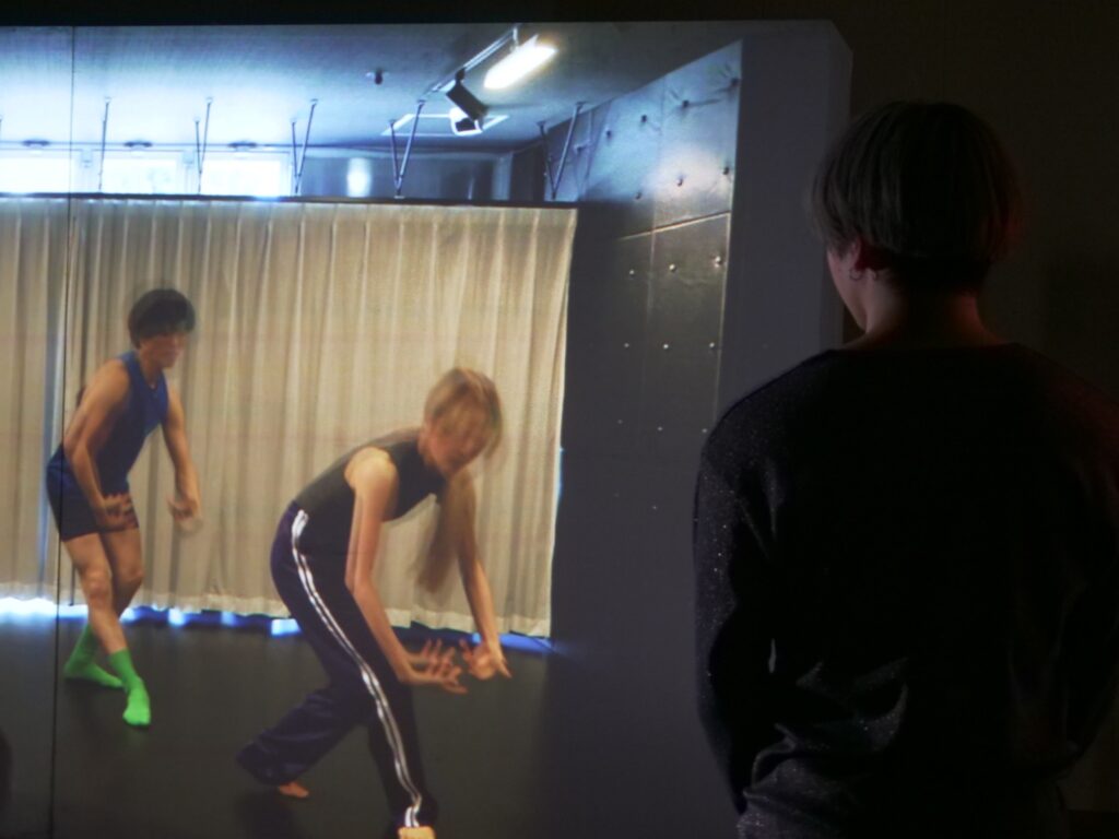 本番中の完成された身体ではなく、稽古の時のリラックスした身体に興味があるので、今回は稽古風景の身体にスポットを当てました。鏡を舞台上に配置したり、過去の稽古映像を投影することで、稽古の際に無意識に行なっている「自己鑑賞」の姿勢が立ち上がるような気がしました。稽古では、鏡を見たり映像を撮影して、自分の動きを修正しようというダンス特有の作業があるので、その構造を舞台上に再現することで、メタ的な表現としても成立させたい狙いもあったと思います。